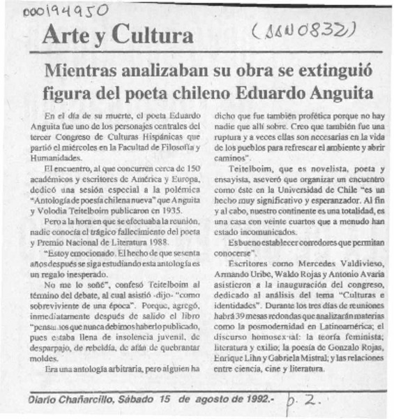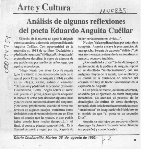 Análisis de algunas reflexiones del poeta Eduardo Anguita Cuéllar [artículo].