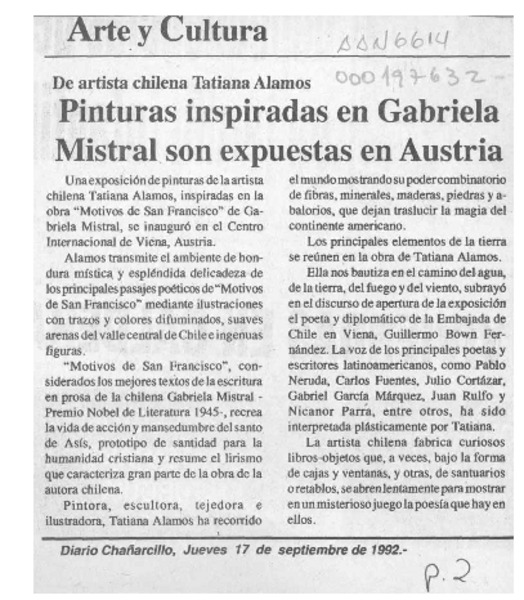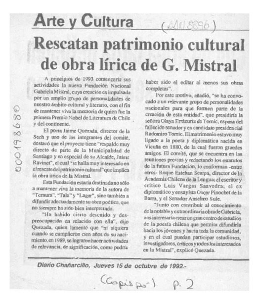 Rescatan patrimonio cultural de obra lírica de G. Mistral [artículo].