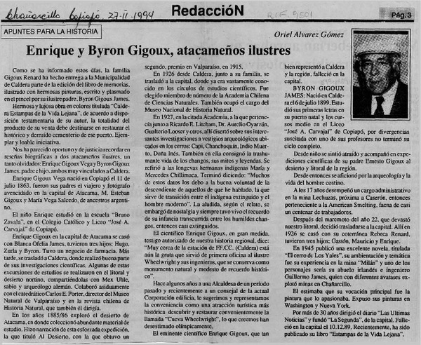 Ancestro paterno atacameño de Gabriela Mistral [artículo] Oriel Alvarez Gómez.