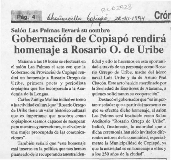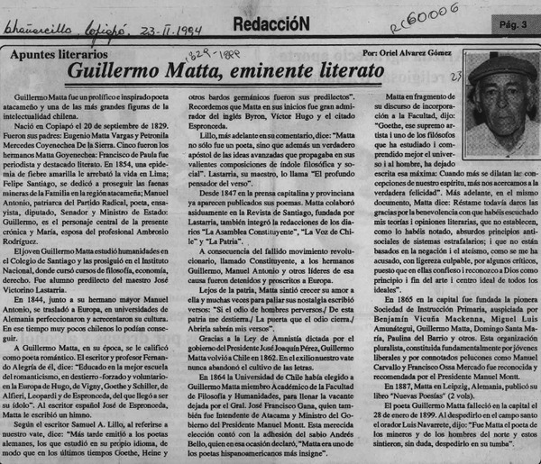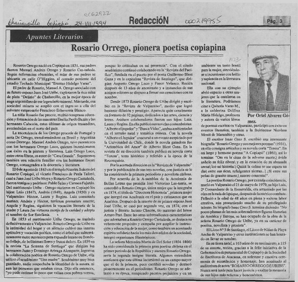 Rosario Orrego, pionera poetisa copiapina [artículo] Oriel Alvarez Gómez.
