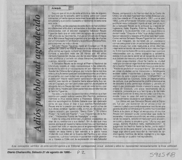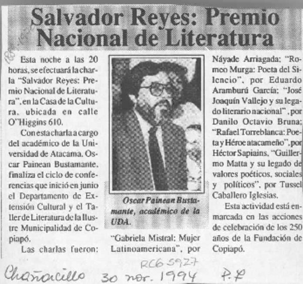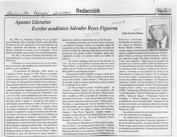 Salvador Reyes Figueroa, escritor copiapino [artículo] Oriel Alvarez Gómez