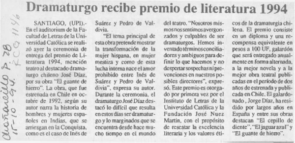 Salvador Reyes, Premio Nacional de Literatura [artículo].
