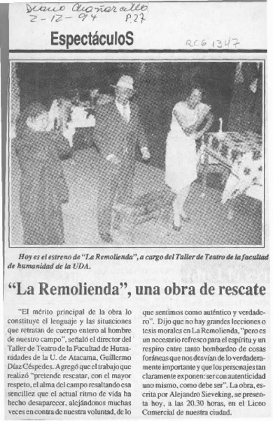 Teatro nacional chileno presentará "Chañarcillo" [artículo]