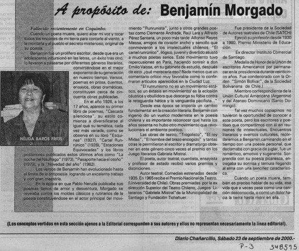 A propósito de Benjamín Morgado [artículo] Nélida Baros Fritis