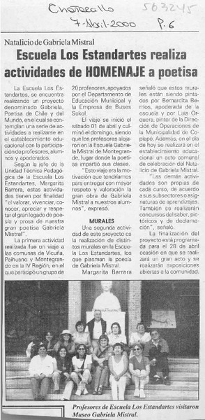 Realizarán ceremonia de recordación homenaje a poetisa Gabriela Mistral [artículo].