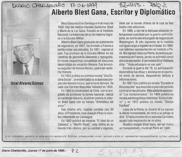 Alberto Blest Gana, Escritor y Diplomático [artículo] Oriel Alvarez G.