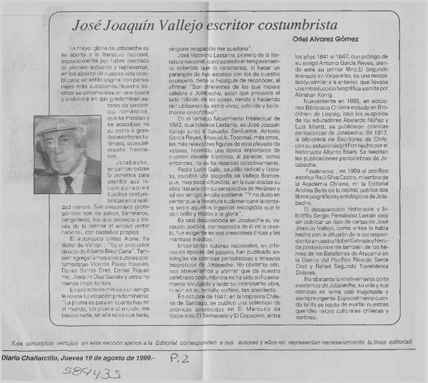 Una Secuencia de recuerdos del escritor José Joaquín Vallejo [artículo].