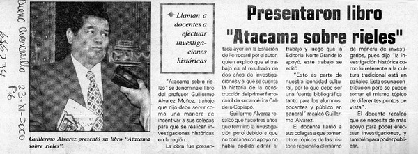 Solemne acto enmarcó lanzamiento de libro "Huasco de cobre" [artículo].