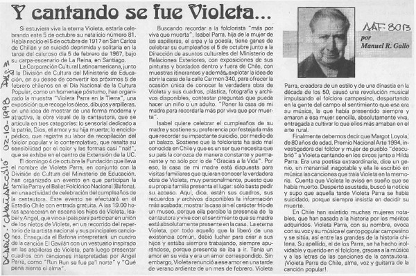 Condecoración póstuma a Violeta Parra [artículo].