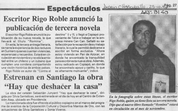 Rigo Roble, un escritor de puerta a puerta [artículo]
