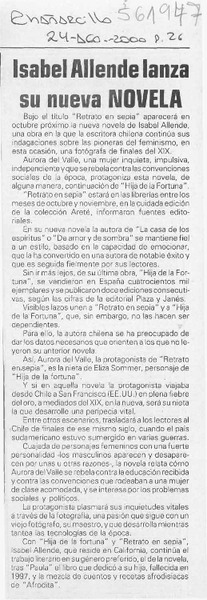 Argumentos para su nuevo libro entrega autora Isabel Allende [artículo].