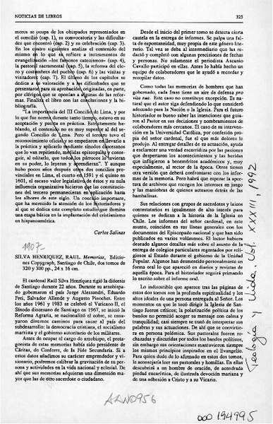 SILVA HENRIQUEZ, RAUL - MEMORIAS