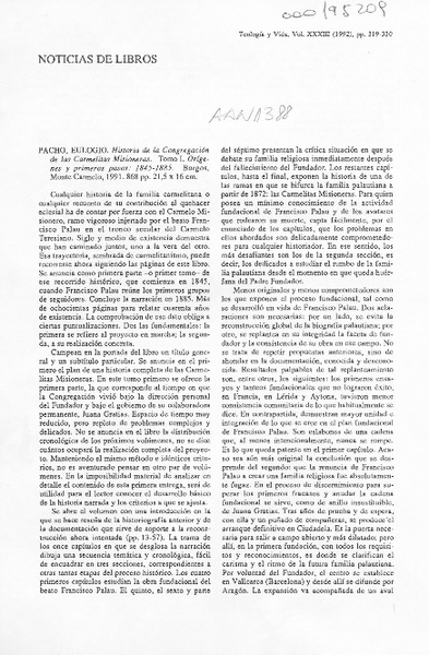 Autores españoles - PACHO, EULOGIO - HISTORIA DE LA CONGREGACION DE LAS CARMELITAS MISIONERAS