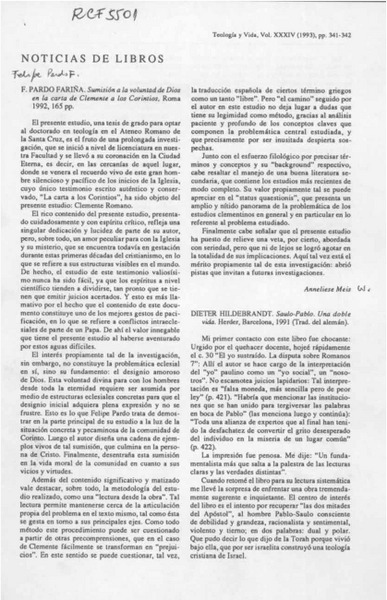 Sumisión a la voluntad de Dios en la carta de Clemente a los Corintios [artículo] Anneliese Meis.