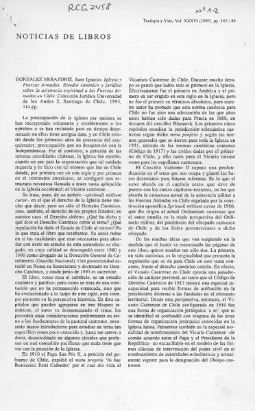 GONZALEZ ERRAZURIZ, JUAN IGNACIO - IGLESIA Y FUERZAS ARMADAS