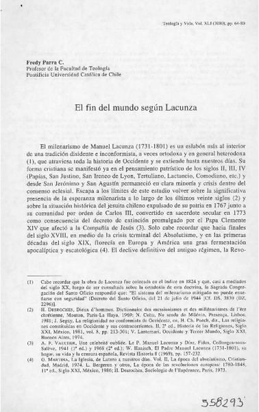 El fin del mundo según Lacunza [artículo] Freddy Parra C.