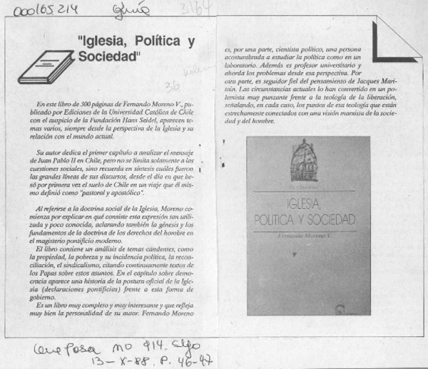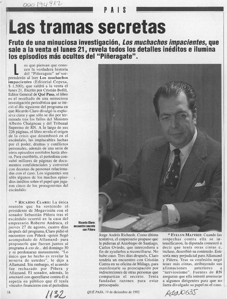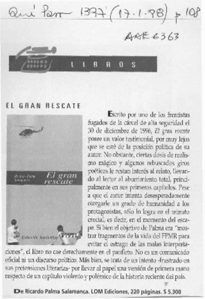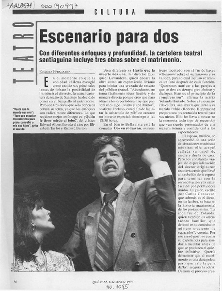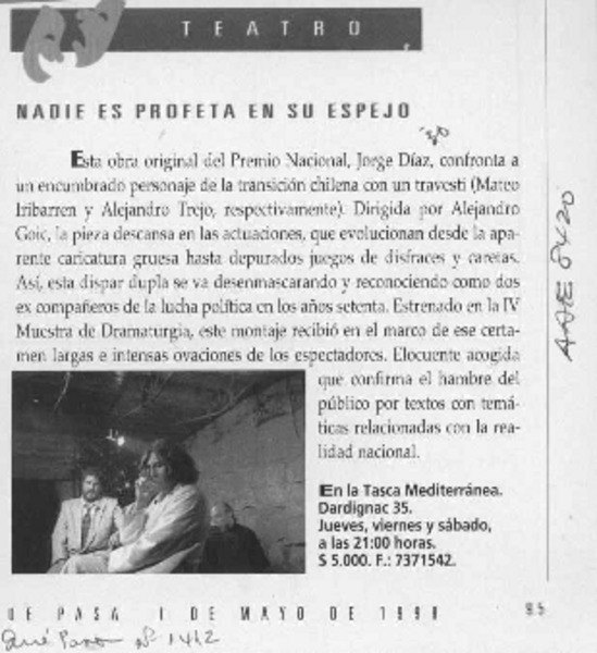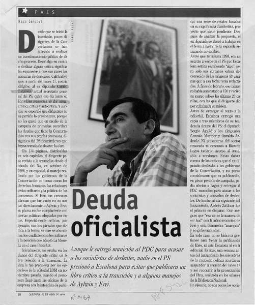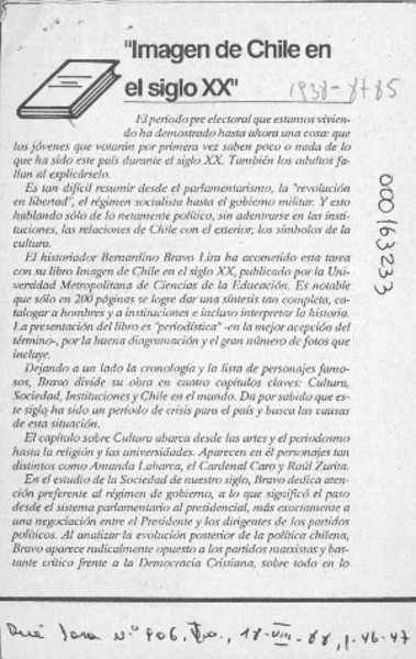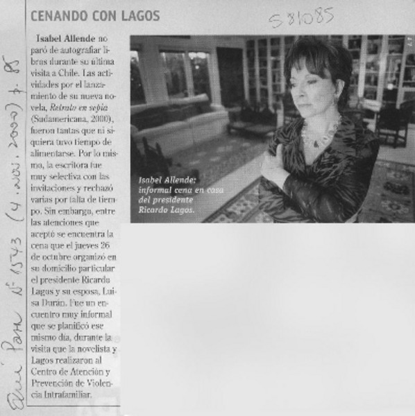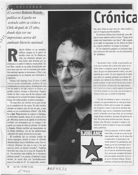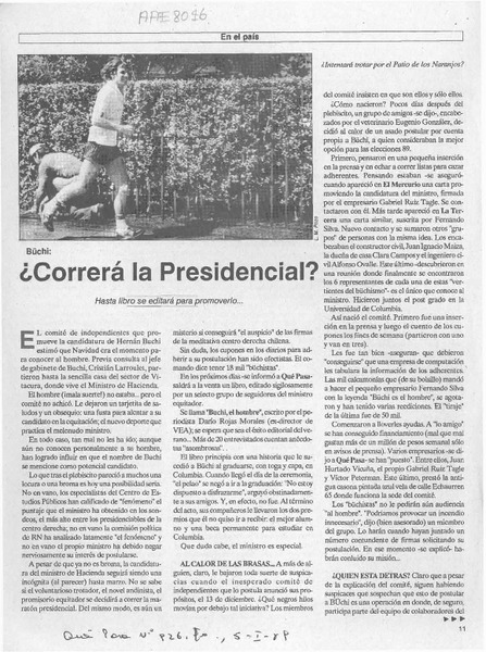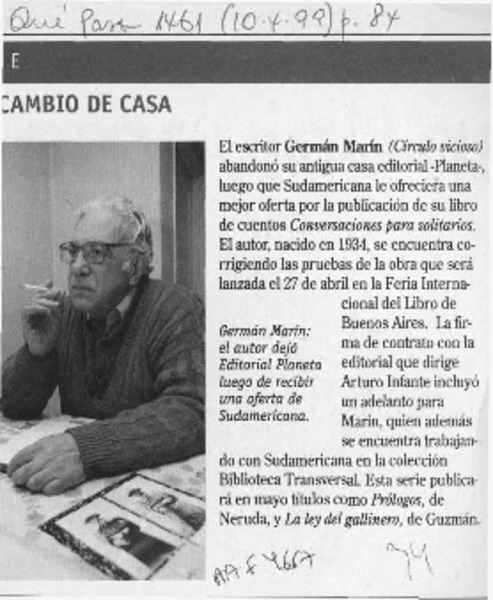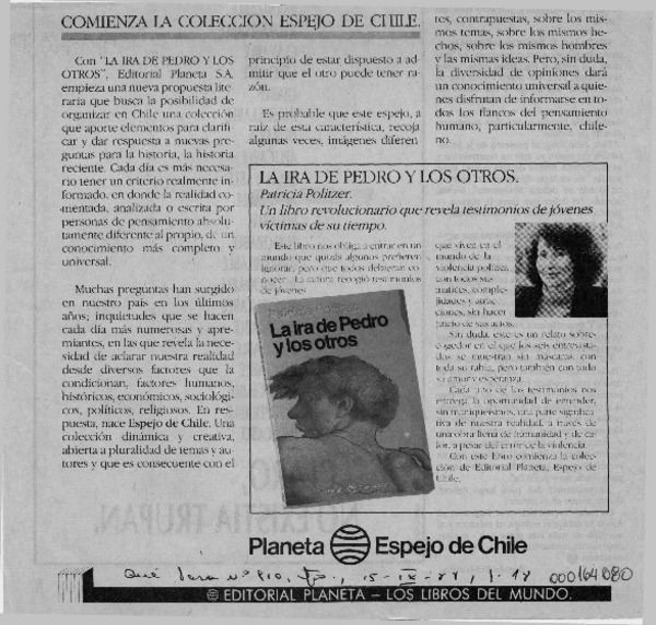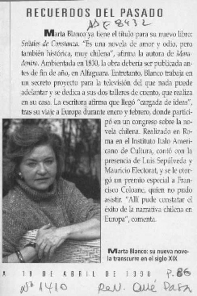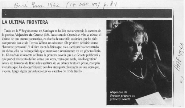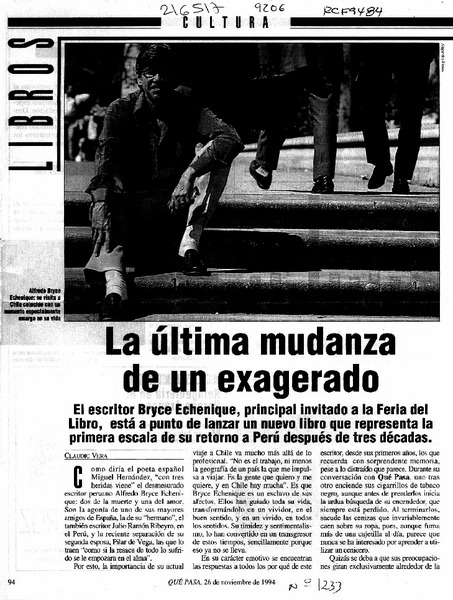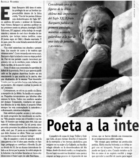 Skarmeta, "no hay estancamiento" [artículo] Ana María Larraín.