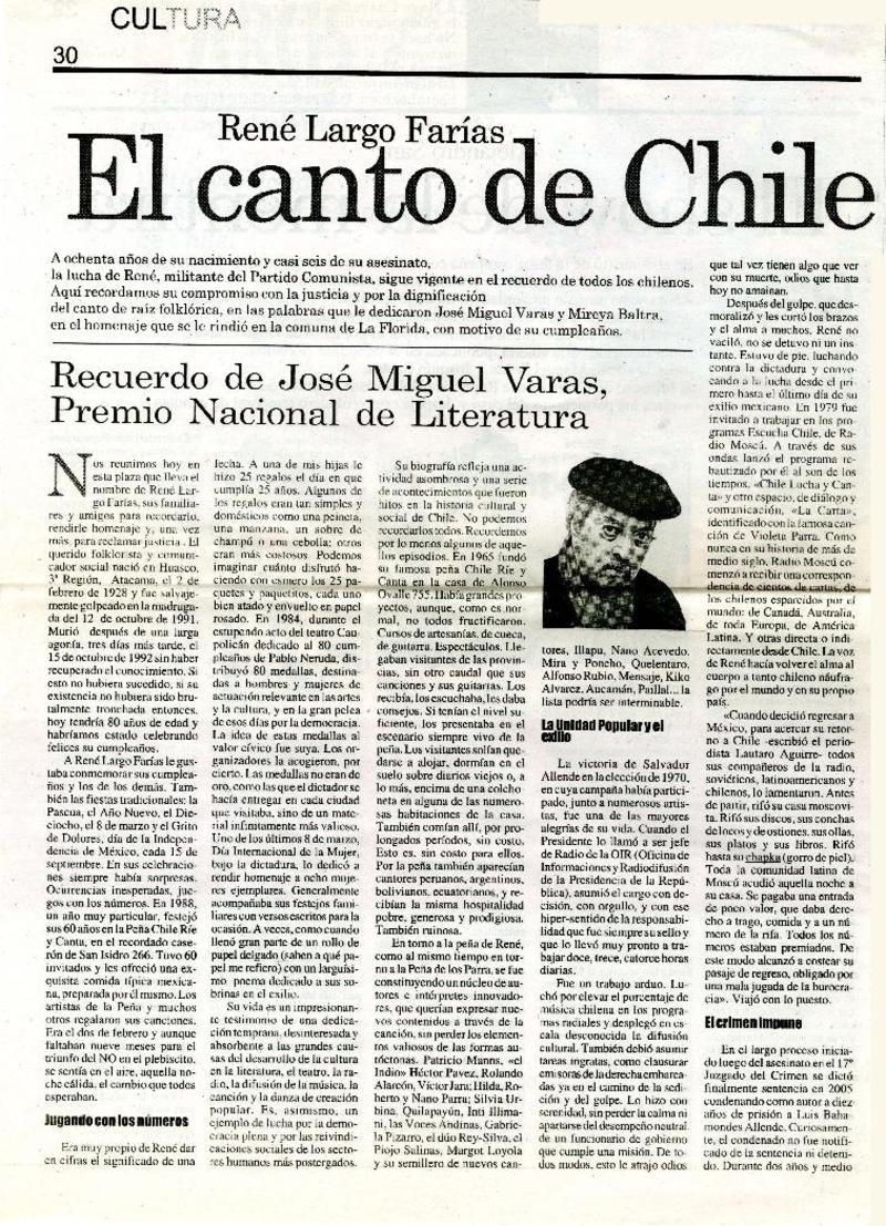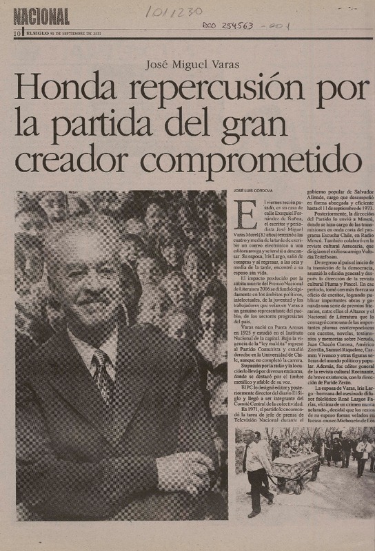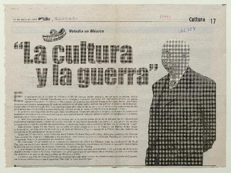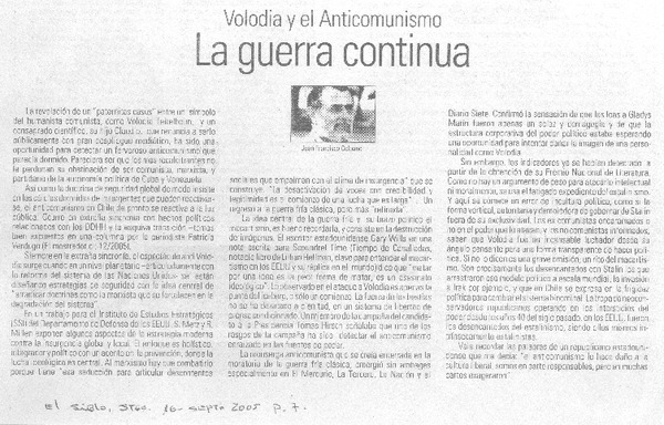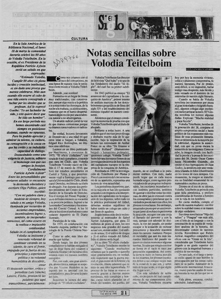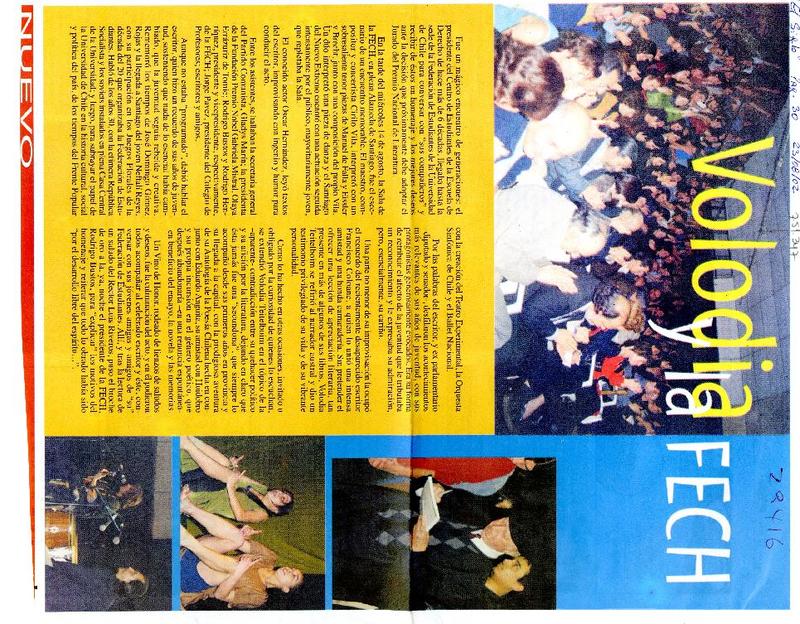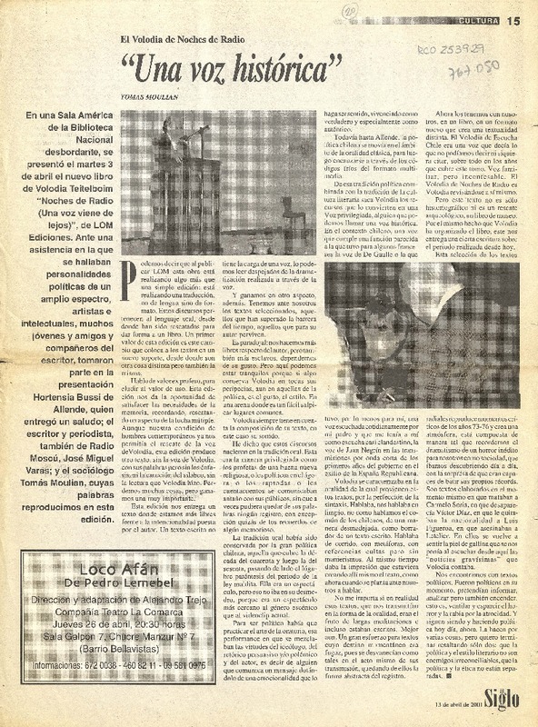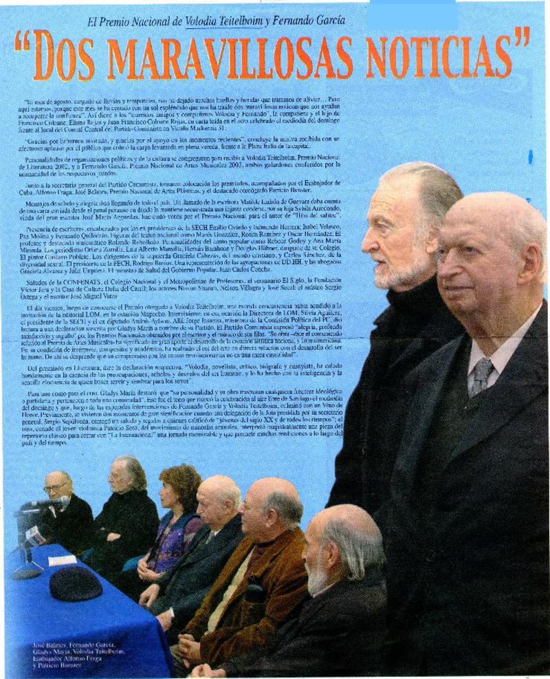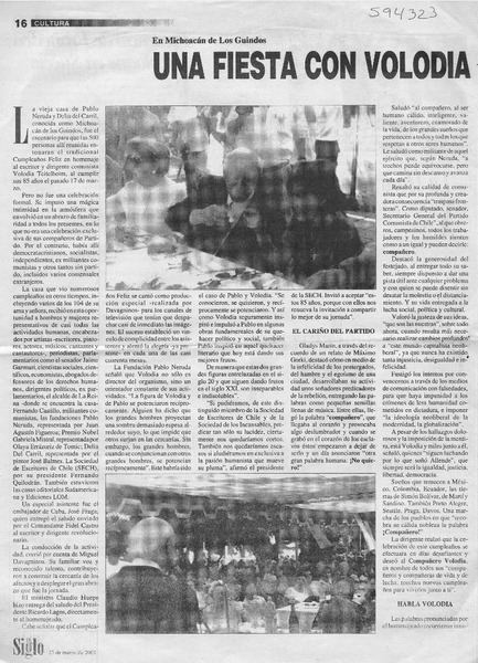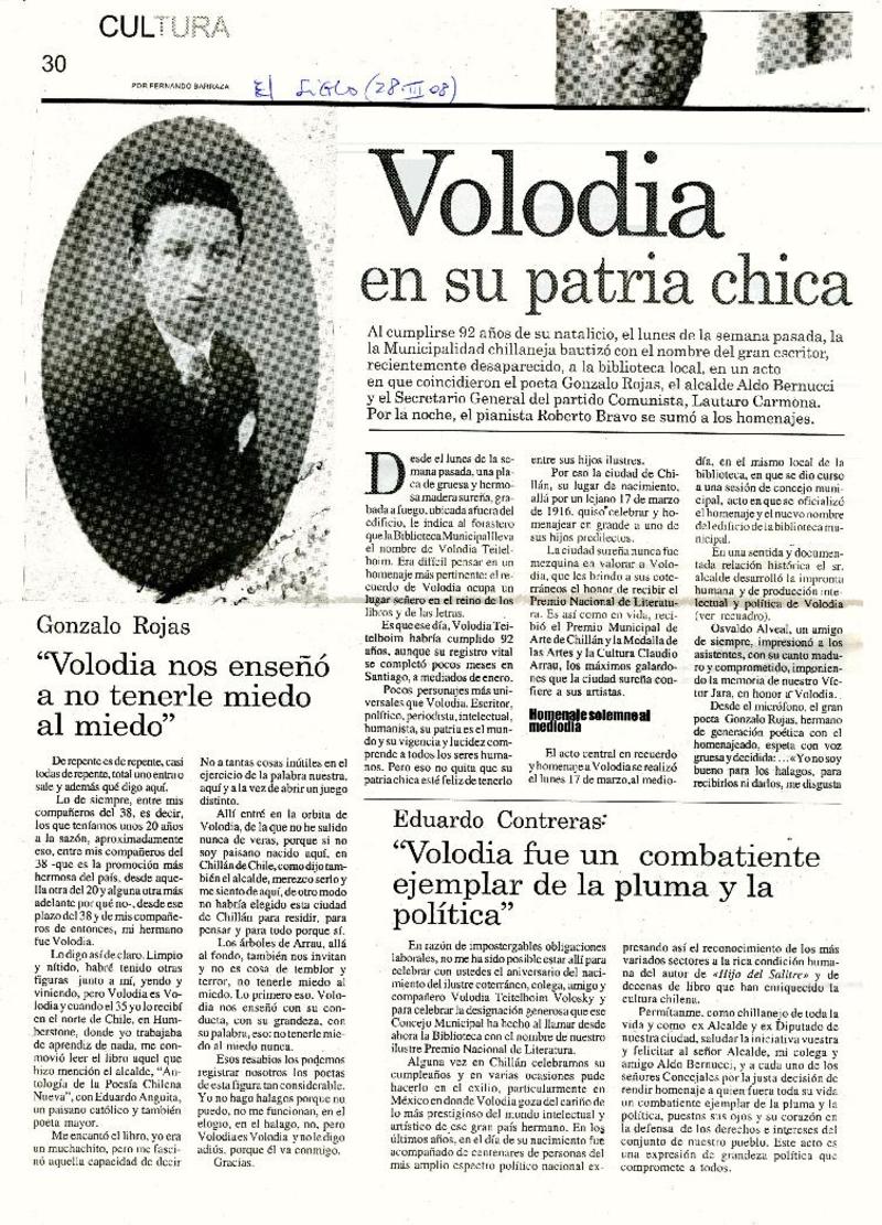 Volodia no deja de escribir [artículo] Gustavo Lulo Arias.