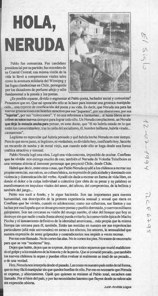 Un panorama de la poesía nerudiana [artículo] Hernán Loyola.