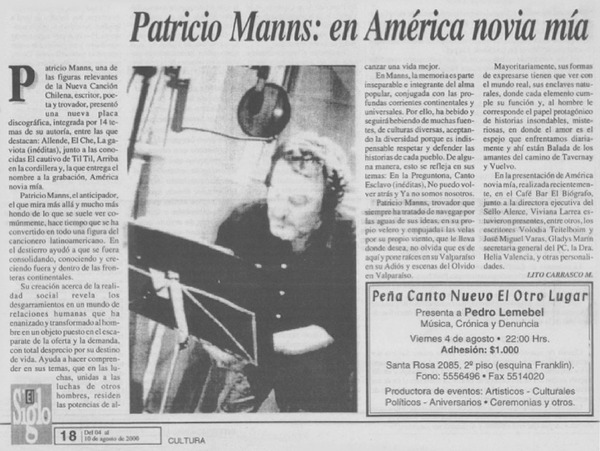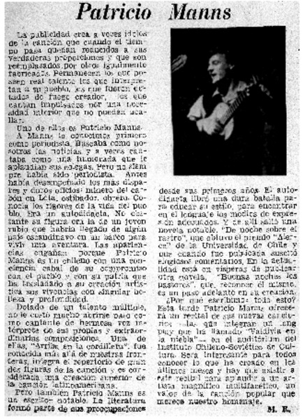 Vuelvo hermoso, vuelvo tierno, Patricio Manns [artículo]