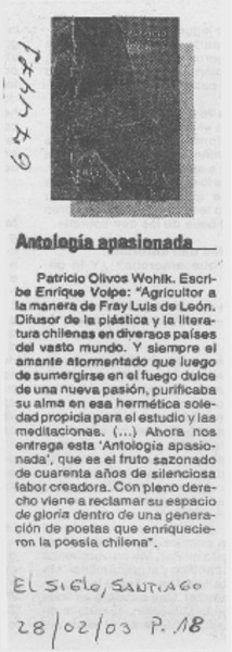 Autores chilenos - Olivos Wohlk, Patricio - Antología apasionada