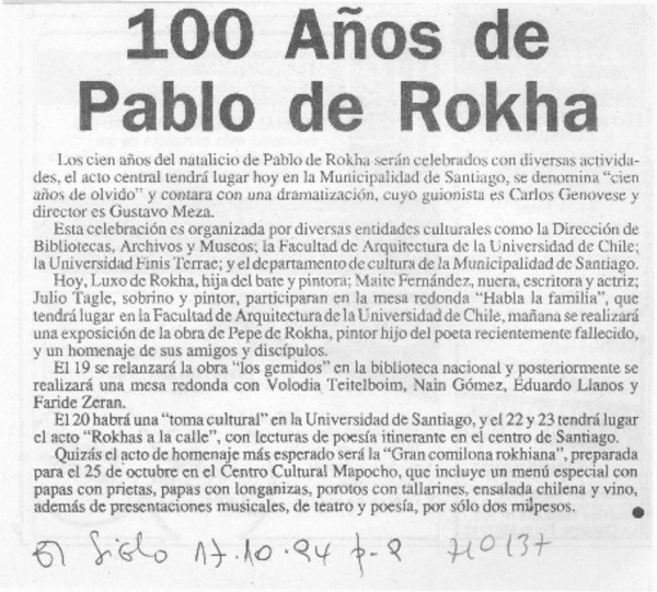 99 años de un clásico de nuestras letras [artículo] Fernando Quilodrán.