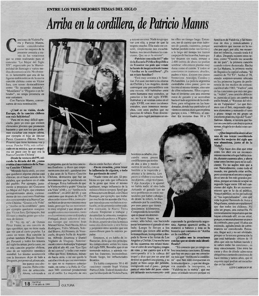 Arriba en la cordillera, de Patricio Manns [artículo] Lito Carrasco M.