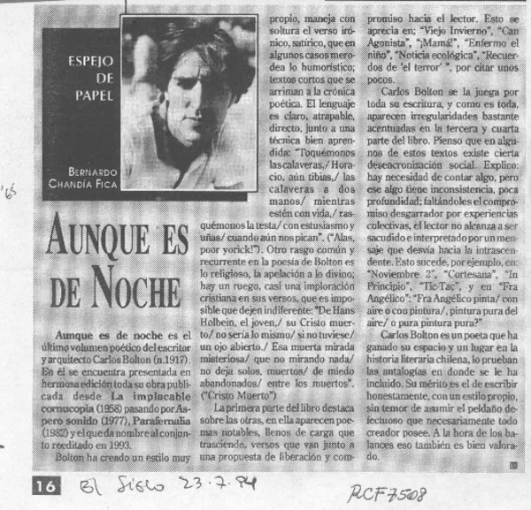 Aunque es de noche [artículo] Bernardo Chandía Fica.