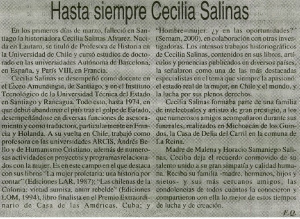 Adiós a Stella Díaz Varín. [artículo] Aristóteles España.