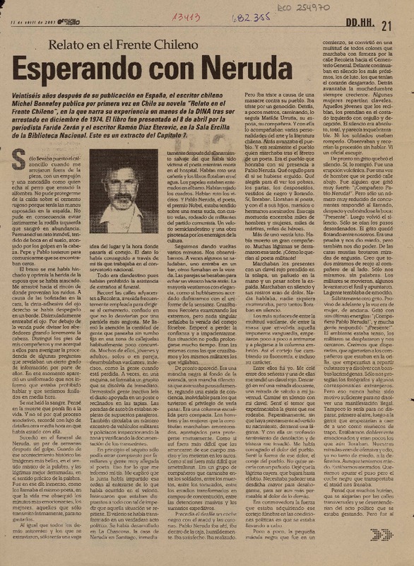 Angeles sobre el Mapocho [artículo] Sergio Rodríguez Saavedra.
