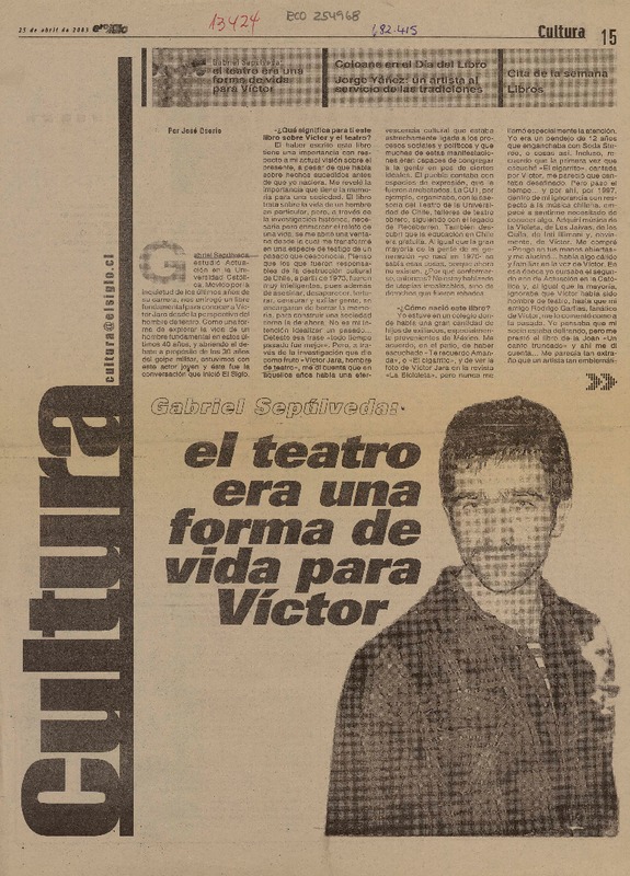 Víctor Torres un dramaturgo con muchos premios, pero sin escenarios : [entrevistas] [artículo] Virginia Vidal.