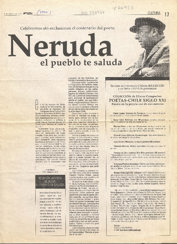 Neruda, Pablo - Aguilera, Oscar - Autores chilenos - Vidas del poeta