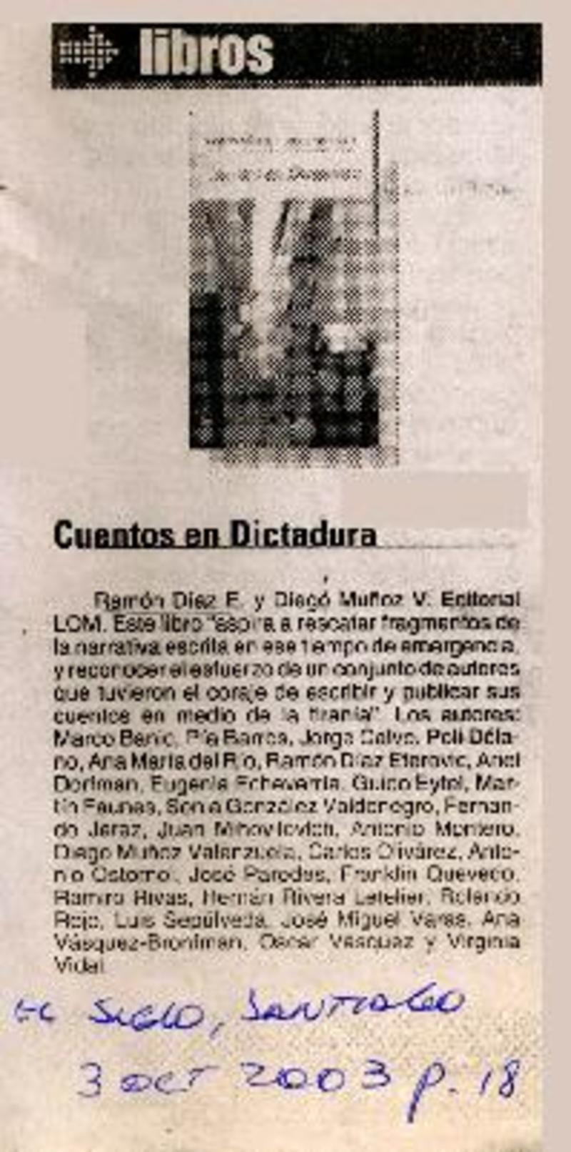 Autores chilenos - Santander, Carlos - Antología del cuento chileno - Calderón, Alfonso - Lastra, Pedro