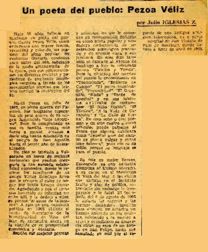 Un poeta del pueblo, Pezoa Véliz [artículo] Julio Iglesias Z.