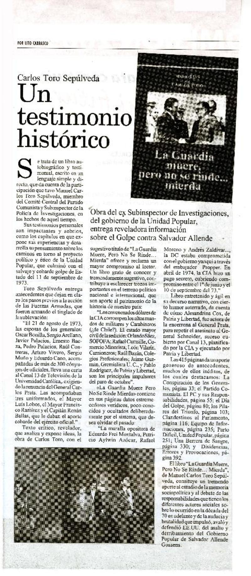Autores chilenos - Toro, Carlos - La guardia no se rinde... mierda