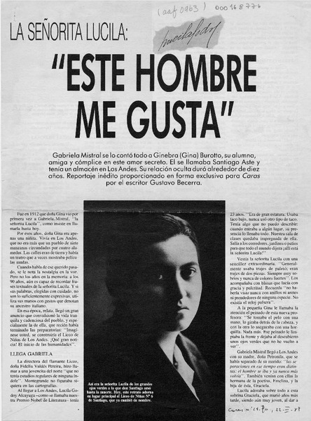 "Lavín perdió su virginidad" [artículo] Claudia Alamo