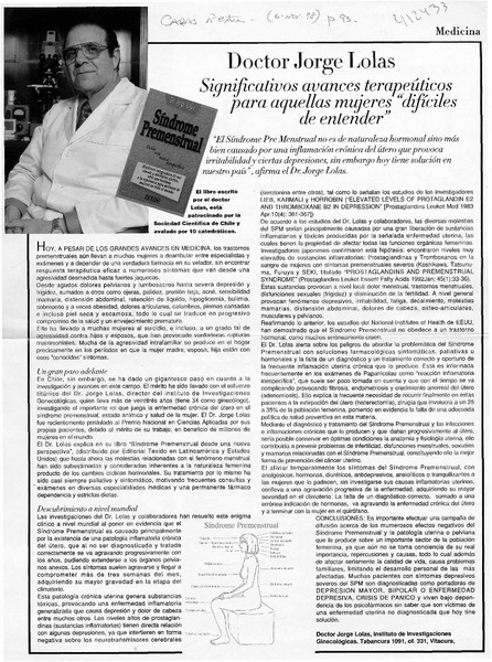 Autores chilenos - Lolas, Jorge - Síndrome premenstrual