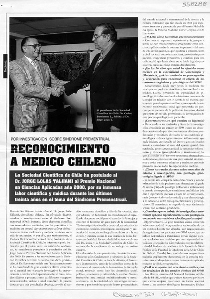 Reconocimiento a médico chileno [artículo]