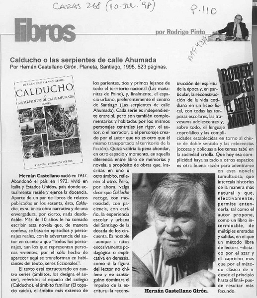 Calducho o las serpientes de calle ahumada [artículo] Rodrigo Pinto.