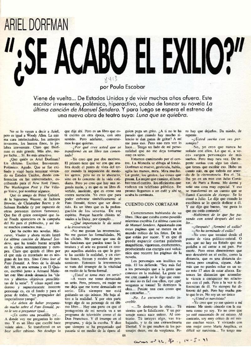 "Se acabó el exilio?" [artículo] Paula Escobar.