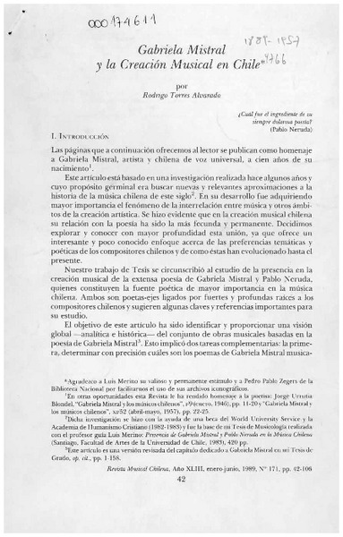 Gabriela Mistral y la creación musical en Chile [artículo] Rodrigo Torres Alvarado.
