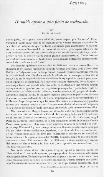 Humilde aporte a una fiesta de celebración [artículo] Coriún Aharonián.