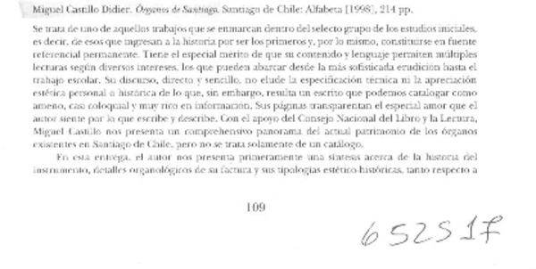 Autores chilenos - Castillo Didier, Miguel - Órganos de Santiago