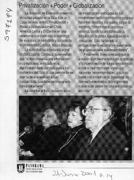Autores chilenos - Brescia, Maura - Privatización + poder + globalización