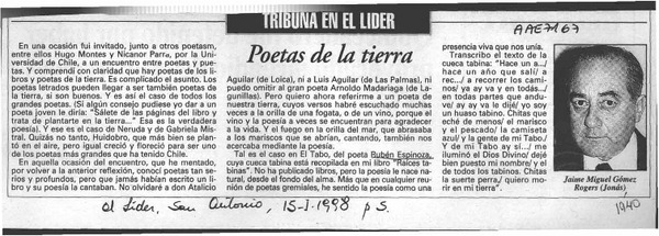 Poetas de la tierra [artículo] Jaime Miguel Gómez Rogers.