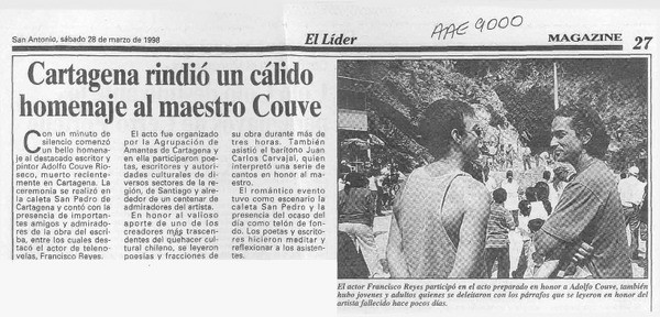 Cartagena rindió un cálido homenaje al maestro Couve [artículo].