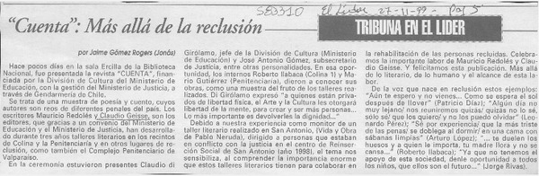 "Cuenta", más allá de la reclusión [artículo] Jaime Gómez Rogers (Jonás)