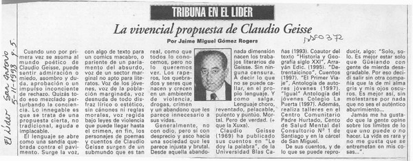 La vivencial propuesta de Claudio Geisse [artículo] Jaime Miguel Gómez Rogers.