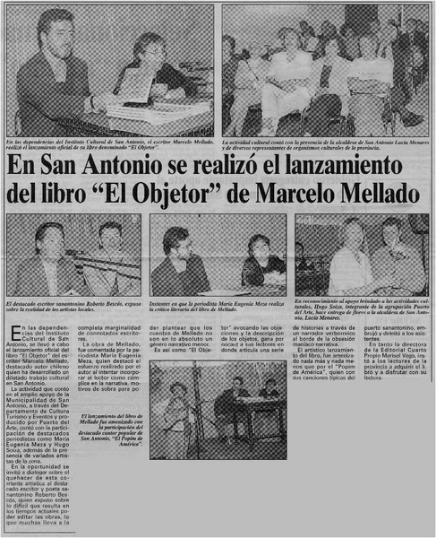 En San Antonio se realizó el lanzamiento del libro "El objetor" de Marcelo Mellado [artículo].