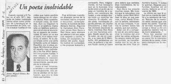 Pablo Olivares, poeta de San Antonio [artículo] Jaime Miguel Gómez Rogers.